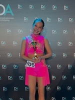 Ett foto av Alicia (i den blå baddräkten) som är modell för poolstore.